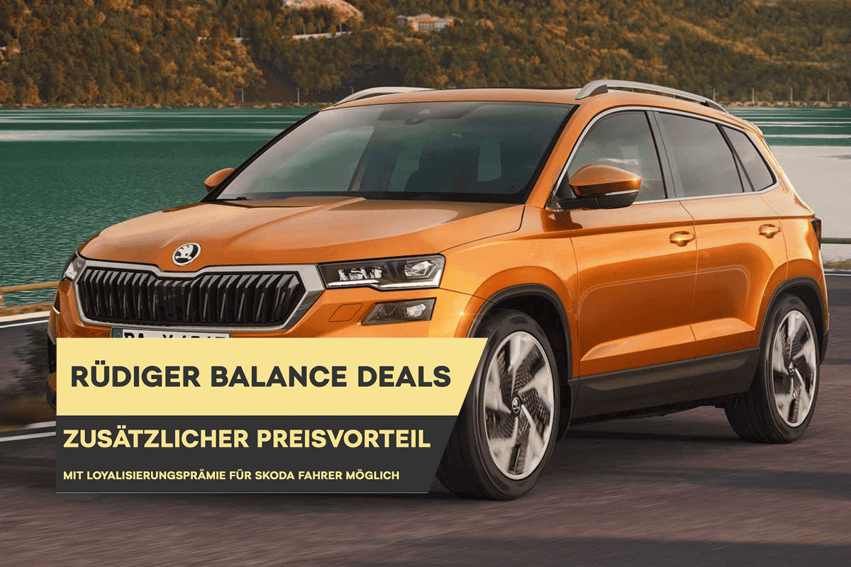 1 Preisvorteil gegenüber der unverbindlichen Preisempfehlung der Škoda Auto Deutschland GmbH am Beispiel des Skoda Octavia Combi Balance und unter Berücksichtigung der 36-monatigen Garantieverlängerung (Gesamtfahrleistung 50.000 km). Die Höhe des Preisvorteils bestimmt sich nach dem jeweiligen Balance Sondermodell (Fabia, Scala, Kamiq, Karoq, Octavia oder Octavia Combi). Der Verkaufspreis wird allein vom Škoda Partner (Autohaus Rüdiger GmbH) festgesetzt.