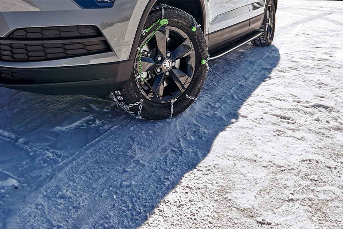 Dieser Schneekettensatz in schrägspuriger Ausführung sorgt für eine ruhige Fahrt und hervorragende Traktion beim Anfahren und Bremsen. Die Montage ist einfach und erfordert kein Bewegen des Fahrzeugs. Ideal für Fahrzeuge wie den Oktavia III Scout, Oktavia IV, Superb III oder Karoq nur 16".
